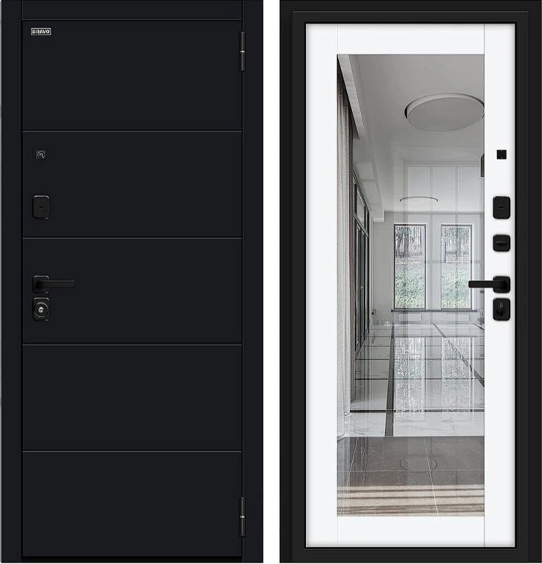 Надежная входная Дверь Браво Флэт/SBlack Black Shell/White Silk премиум класса по цене 42 800 руб. Большая толщина стали защитит от проникновения в ваш дом, квартиру или коттедж. Используется очень качественная фурнитура: замки, цилиндры, ручки, защелки. Покрытие и отделка двери изготовлено под внимательным контролем производителя. Дверь имеет долгий срок службы и гарантию.